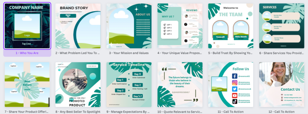 I am Veenaa, a Branding and Marketing Consultant. I have developed these templates with sound branding guidelines so that you can project a professional image and attract your target audience from day 1. You just need to update the 12 pre-designed Instagram Templates in Canva via the link that will be shared with you after the purchase and you are good to go!